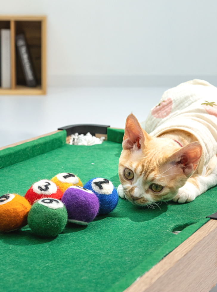 🐾「ビリヤード型キャットトイ」で、猫ちゃんに本格的な遊び場をプレゼントしませんか?インテリアにもぴったりのデザインです!